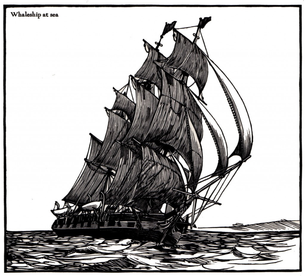 This trade edition of Moby-Dick is a reduced version of the Arion Press Moby-Dick, which was published in 1979 in a limited edition of 250 copies and has been hailed as a modern masterpiece of bookmaking. It was hand set under the supervision of one of America’s finest book designers and printers. The initial letters that begin each chapter were designed especially for this book and christened “Leviathan.” The illustrations, of places, creatures, objects or tools, and processes connected with nineteenth-century whaling, are original boxwood engravings by Massachusetts artist Barry Moser. The text of Moby-Dick used in this edition is based on that used in the critical edition of Melville’s works published by the Northwestern University Press and the Newberry Library.