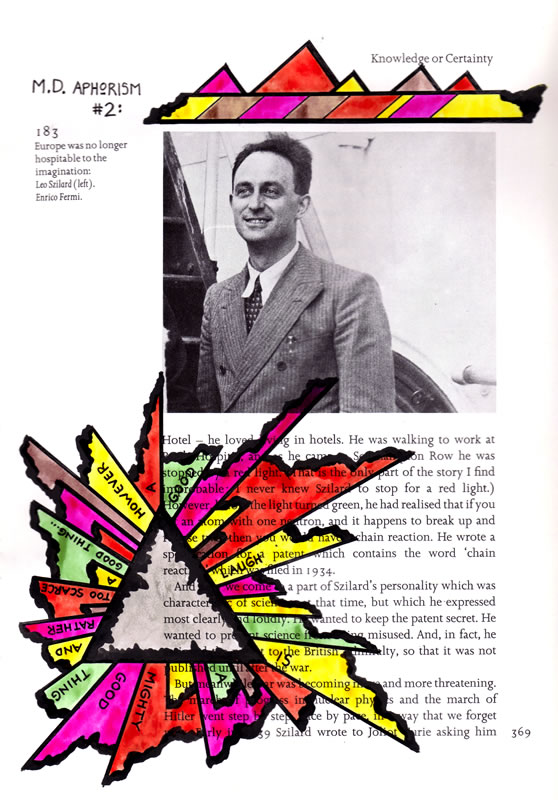 *“And the man that has anything bountifully laughable about him, be sure there is more in that man than you perhaps think for.” – To confirm his identity I did a Google image search for Enrico Fermi, the man pictured smiling in the black-and-white photograph on the found page, framed between the legend-band and shard array, and while in many of the scrolling images the corners of his mouth are lifted, rarely are his teeth showing as they are in the photograph of him here, expect in photographs taken of him in his later years, this developer of the atomic bomb.