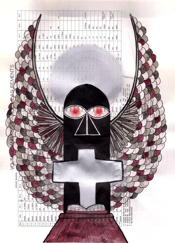 (7.75 inches by 11 inches; acrylic paint and ink on found paper; September 12, 2009)